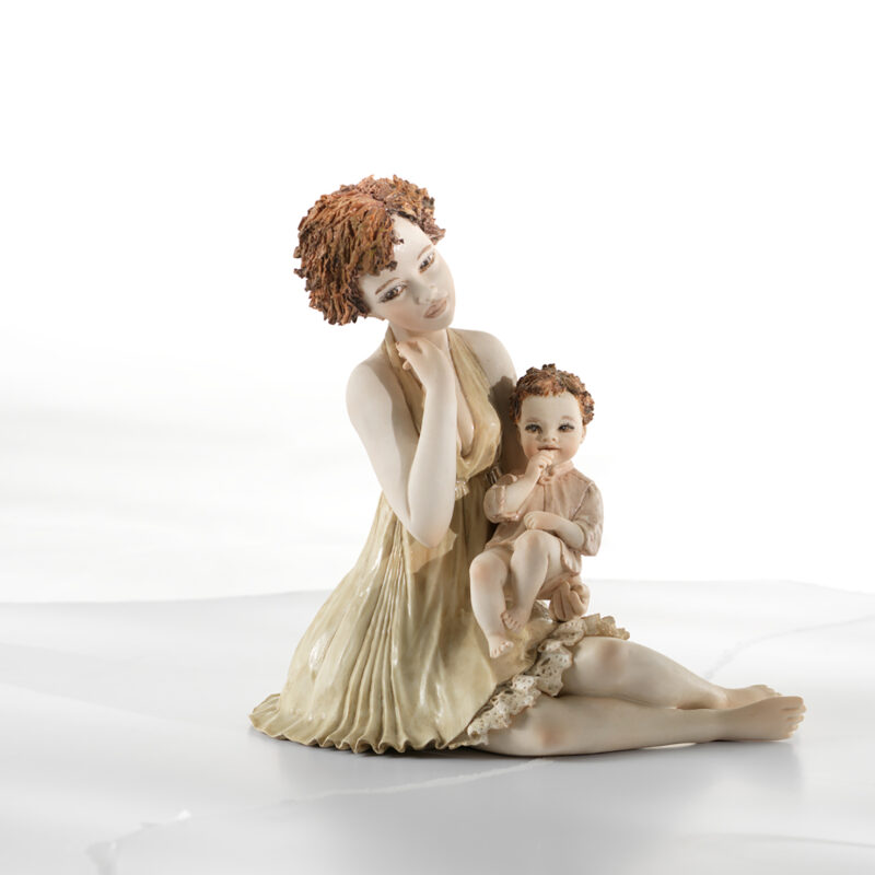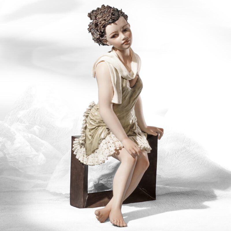 Every product created by Sibania is unique both concerning the realization process of every single piece and the production technology, which boasts its being inimitable by others. Each item is hand made and hand painted in our workshop, set in Vicenza (Italy). All clothes are made of thin, porcelain layers on which different kinds of textures are impressed. These layers are cutted according to the characteristics of every single template. They are successively carefully applied on the figurine body. Hairstyles are also handcrafted depending on each figurine’s unique features. Faces, clothes and accessories are painted on the biscuit with non-toxic colors. The piece is eventually baked one last time (“third firing”). Any additional details such as violin strings or the Vespa kickstands are then applied on the finished piece.
