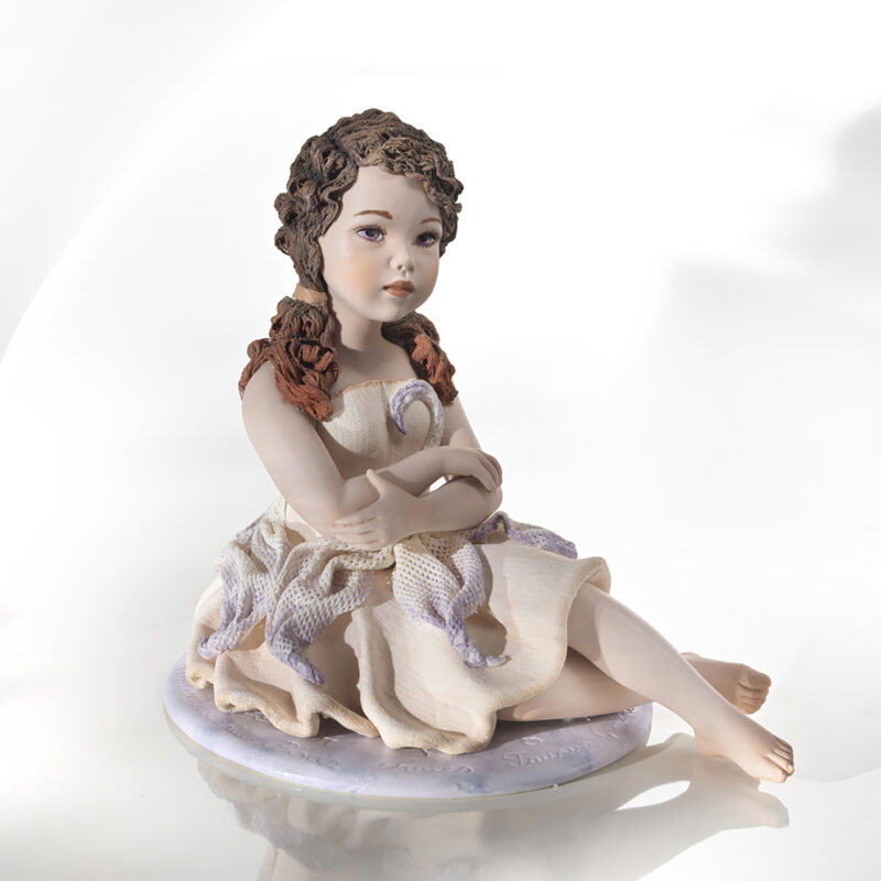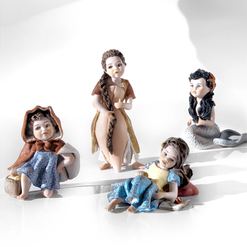 Every product created by Sibania is unique both concerning the realization process of every single piece and the production technology, which boasts its being inimitable by others. Each item is hand made and hand painted in our workshop, set in Vicenza (Italy). All clothes are made of thin, porcelain layers on which different kinds of textures are impressed. These layers are cutted according to the characteristics of every single template. They are successively carefully applied on the figurine body. Hairstyles are also handcrafted depending on each figurine’s unique features. Faces, clothes and accessories are painted on the biscuit with non-toxic colors. The piece is eventually baked one last time (“third firing”). Any additional details such as violin strings or the Vespa kickstands are then applied on the finished piece.