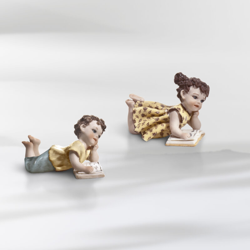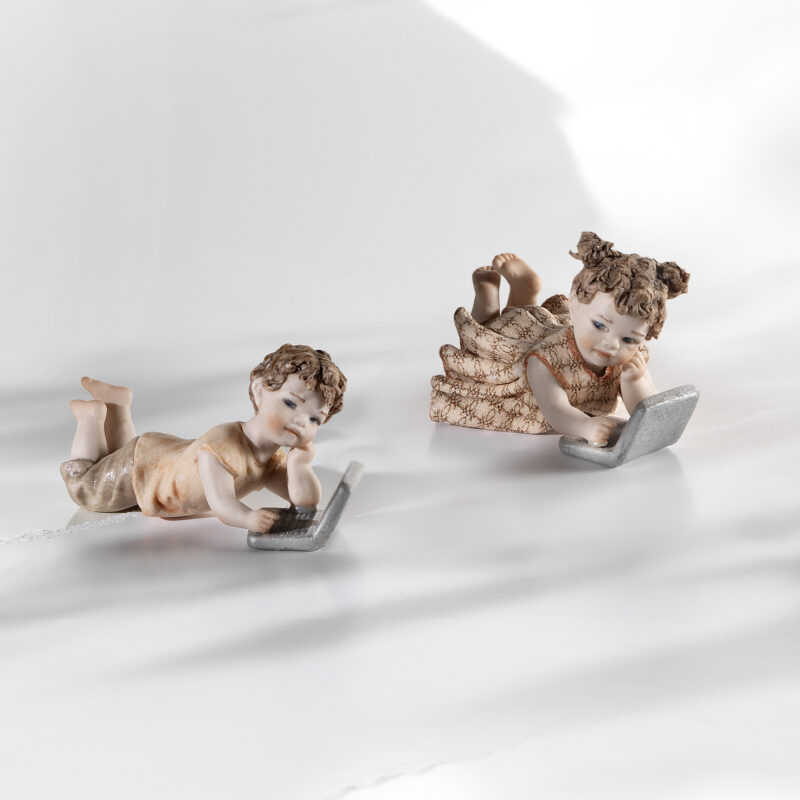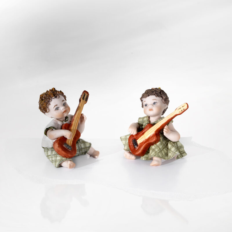 Every product created by Sibania is unique both concerning the realization process of every single piece and the production technology, which boasts its being inimitable by others. Each item is hand made and hand painted in our workshop, set in Vicenza (Italy). All clothes are made of thin, porcelain layers on which different kinds of textures are impressed. These layers are cutted according to the characteristics of every single template. They are successively carefully applied on the figurine body. Hairstyles are also handcrafted depending on each figurine’s unique features. Faces, clothes and accessories are painted on the biscuit with non-toxic colors. The piece is eventually baked one last time (“third firing”). Any additional details such as violin strings or the Vespa kickstands are then applied on the finished piece.