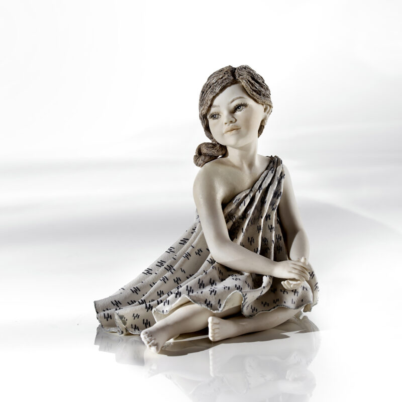 Every product created by Sibania is unique both concerning the realization process of every single piece and the production technology, which boasts its being inimitable by others. Each item is hand made and hand painted in our workshop, set in Vicenza (Italy). All clothes are made of thin, porcelain layers on which different kinds of textures are impressed. These layers are cutted according to the characteristics of every single template. They are successively carefully applied on the figurine body. Hairstyles are also handcrafted depending on each figurine’s unique features. Faces, clothes and accessories are painted on the biscuit with non-toxic colors. The piece is eventually baked one last time (“third firing”). Any additional details such as violin strings or the Vespa kickstands are then applied on the finished piece.
