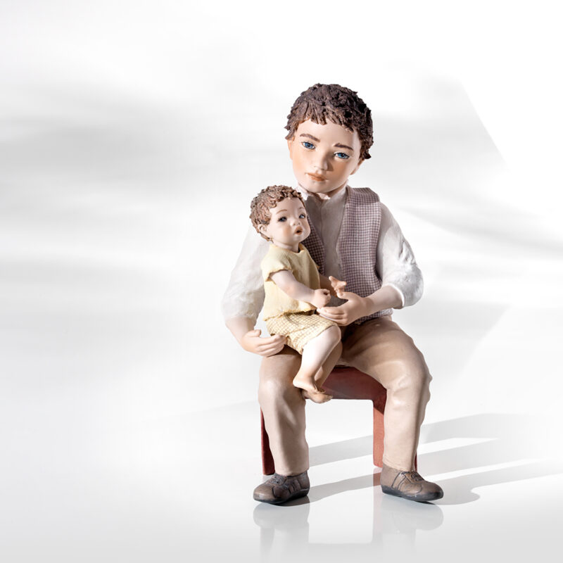 Every product created by Sibania is unique both concerning the realization process of every single piece and the production technology, which boasts its being inimitable by others. Each item is hand made and hand painted in our workshop, set in Vicenza (Italy). All clothes are made of thin, porcelain layers on which different kinds of textures are impressed. These layers are cutted according to the characteristics of every single template. They are successively carefully applied on the figurine body. Hairstyles are also handcrafted depending on each figurine’s unique features. Faces, clothes and accessories are painted on the biscuit with non-toxic colors. The piece is eventually baked one last time (“third firing”). Any additional details such as violin strings or the Vespa kickstands are then applied on the finished piece.